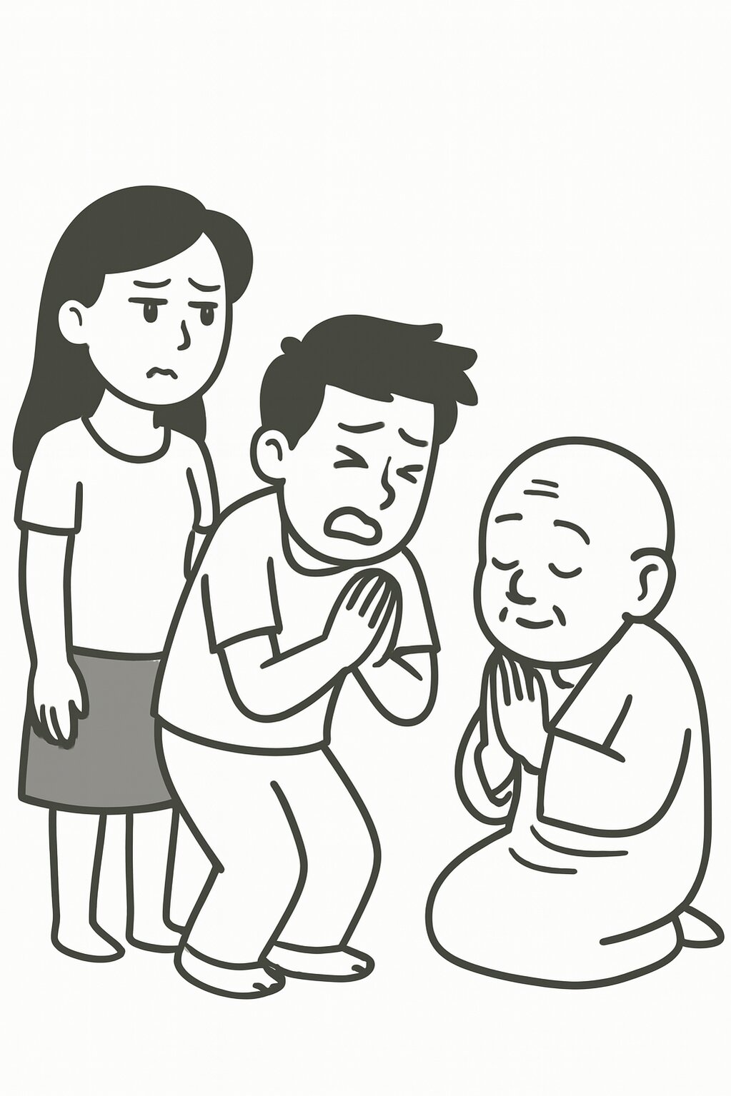 Bà lão chèo đò nghe vậy, liền thì thầm với cậu thiếu niên: – Cô ấy tin thần miếu lắm. Đêm 30 hàng tháng hay vào miếu khấn vái. Con cứ núp sau tượng thần, lúc cô ấy khấn thì nhảy ra xưng là thần, muốn gì cô ấy cũng chiều.