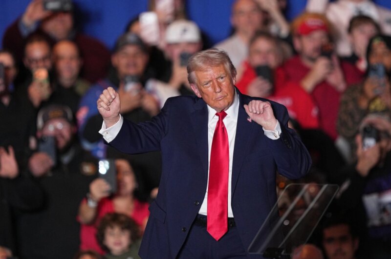 Ông Trump nhảy điệu quen thuộc sau khi phát biểu tại Khu nghỉ dưỡng và Sòng bạc Mount Airy ở hạt Monroe, bang Pennsylvania, ngày 9/12. Ảnh: AP