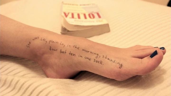 Trích dẫn từ tiểu thuyết “Lolita” của Vladimir Nabokov dường như được viết lên cơ thể một phụ nữ.