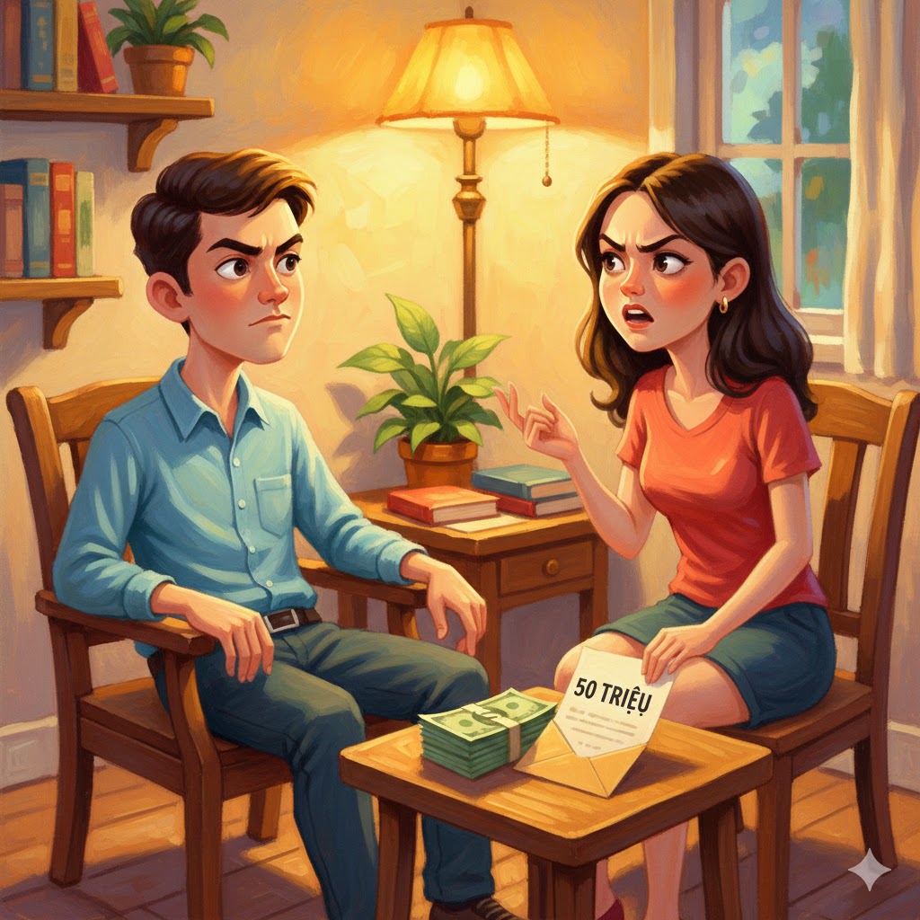 – Anh có biết vì 50 triệu đó mà vợ chồng tôi ngày nào cũng cãi nhau không?
