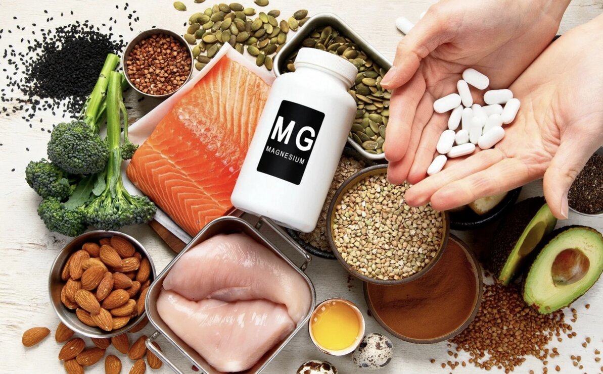 Theo Healthline và Medical News Today, các món ăn giàu magie bao gồm: Ca cao và sản phẩm từ nó là chocolate đen, quả bơ, chuối, các loại hạt (hạnh nhân, hạt điều, hạt dẻ, hạt bí, hạt chia...), các loại đậu (đậu lăng, đậu nành và đậu phụ, đậu đen...), ngũ cốc nguyên hạt (gạo lứt, yến mạch...), các loại cá béo (tức cá dầu, như cá thu, cá mòi, cá trích...), ức gà, động vật có vỏ, rau màu xanh lá đậm (đặc biệt là cải bó xôi và cải kale).