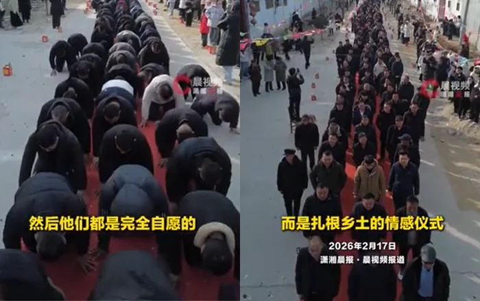 Trong dịp Tết Nguyên Đán năm nay, người dân làng Đại Lôi (Đại Lôi thôn), huyện Dương Cốc, thành phố Liêu Thành, tỉnh Sơn Đông, Trung Quốc, lại một lần nữa tái hiện phong tục "tập thể khấu đầu bái niên" - một truyền thống đã được duy trì suốt hơn 600 năm qua.