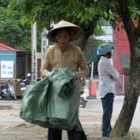 Cửu vạn ở đây không có ai là nam giới, cũng ít người trẻ, vì: “Mỗi chuyến hàng chỉ được có 5 nghìn thôi. 5 nghìn, chỉ có người già chấp nhận. Những đứa khỏe đều đi buôn hết cả rồi, không thì làm xe ôm kiếm hơn” - bà Nhời kể lể.