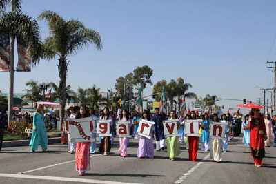 Học sinh trung học La Quinta High School tham gia diễn hành Tết Nguyên Đán 2009. (H́nh: Ngọc Lan/Người Việt)