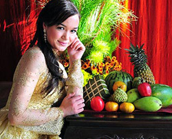 Victoria Phạm Thúy Vy làm dáng bên mâm ngũ quả