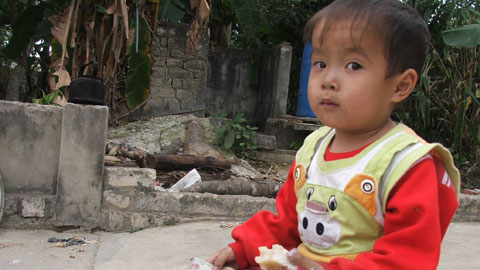 “Ban đầu sinh cháu, chỉ thấy cháu hay quấy. Sau đó có người đến xem họ nói đó là triệu trứng của bệnh tim bẩm sinh gia đình mới biết. Biết bệnh của cháu nhưng lúc đó gia đình chẳng có điều kiện chữa trị nên đành để ở nhà chăm sóc… Cháu vẫn hay thở dốc, lười ăn và hay chơi một mình như thế” bà Trần Thị Nhung (bà nội cháu Quân) người chơi nhiều nhất với Quân kể lại.