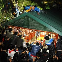 Hàng ngàn người bao vây một trong các điểm bán ấn tại lễ khai ấn đền Trần (Nam Định) đêm 16-2