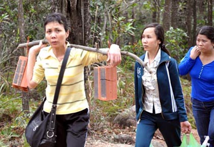 Rủ nhau “cõng” gạch cung tiến xây chùa