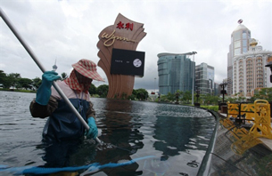 Một công nhân đang dọn dẹp tại khu sòng bài ở Macau hôm 7/9/2010
