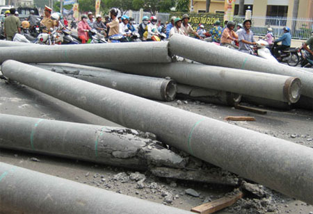 Ôm cua gắt, 30 tấn bê tông “nhảy” khỏi xe