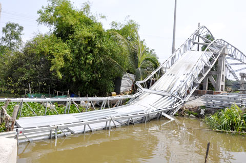 Sập nhịp cầu sắp hoàn thành, 3 người bị thương