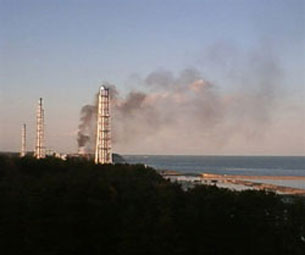 Khói đen từ lò phản ứng thứ ba của nhà máy điện hạt nhân Tepco Fukushima hôm 23 tháng 3 năm 2011.