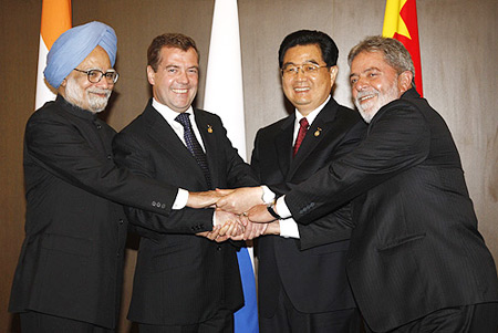 Nga được gọi là "trạm nạp khí đốt của thế giới" với nguồn dầu và khí khổng lồ. Brazil là “cơ sở nguyên liệu thô” của loài người với rất nhiều quặng sắt và đậu tương. Trong khi đó, Trung Quốc trở thành “công xưởng thế giới” và Ấn Độ là “văn phòng của thế giới” nhờ đội ngũ công nhân viên trong ngành công nghệ thông tin và dịch vụ có trình độ cao.