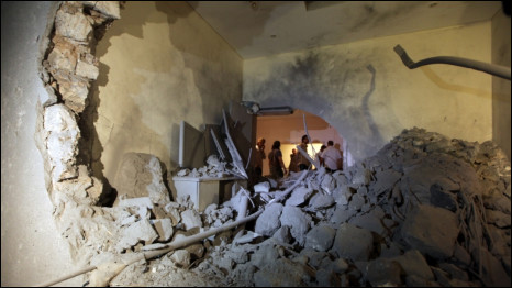 Một số cuộc không kích nhắm vào dinh thự Bab al-Aziziya của Đại tá Gaddafi, đă được đưa tin gần đây.