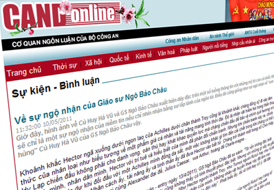 Chuyện lạ, là ngày 10 tháng 5, báo Công An Nhân Dân chạy một bài viết chỉ trích bài blog của GS Ngô Bảo Châu.