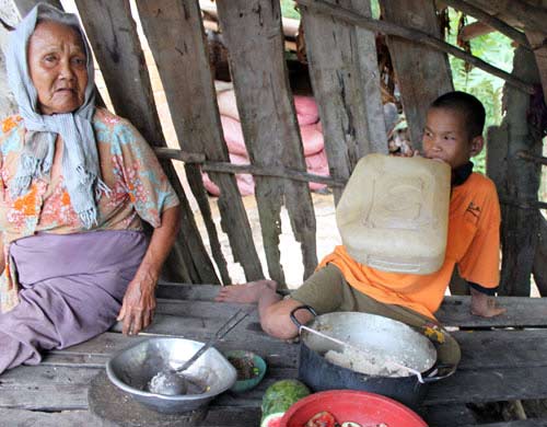 Căn nhà của bà cháu Thạo ẩn mình trong đám cây và dây leo dại um tùm, chơ vơ giữa cánh đồng mênh mông. Khi đến nơi, chúng tôi thấy Thạo đang ăn cơm trong chòi lá bên hiên nhà, sau khi đã trút bỏ bộ đồ lem luốc, ướt nhẹp sình lầy. Cậu bé đã 16 tuổi nhưng người nhỏ choắt. Bữa ăn của Thạo sơ sài đến chạnh lòng: một nồi cơm nguội cạn đáy, bên trong có hai trái chuối nhỏ còn nguyên vỏ cùng chén mắm sống bốc mùi...