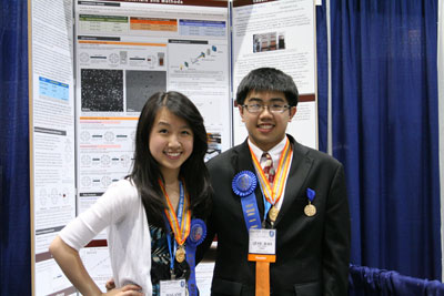 Vũ Mai-Anh (trái) và Nguyễn Duy Quốc-Bảo trước dự án được giải nhất Hội Chợ Khoa Học Kỹ Thuật Quốc Tế 2011 tại Los Angeles. (Hình: Ông Luận Nguyễn cung cấp)