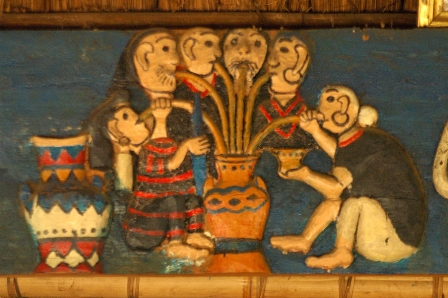 Bức phù điêu miêu tả cảnh uống rượu cần của người Cơtu.