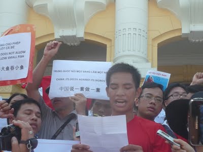 Nếu đi biểu tình mà còn e dè điều này điều nọ thì đừng đi biể tình nữa. Tại sao cứ phải đến trước tòa đại sứ Trung Quốc để biểu tình phản đối? Hãy đi đến Lăng Cụ Hồ, dựa vào uy danh của Cụ mà hô to những khẩu hiệu phản đối Trung Quốc. Nếu cần thì cứ khóc như đưa đám ma chôn đất nước Việt Nam "Bác Hồ ơi, Bác sống lại mà xem. Đất nước mà Bác đã bỏ ra biết bao nhiêu công sức giành lại thì nay đang bị Bắc Kinh đe dọa. Nói dại nếu Việt Nam mà mất thì Bác còn có thể nằm ở quảng trường Ba Đình này mà yên nghỉ nữa không hở Bác. Ới Bác ơi là Bác ơi".