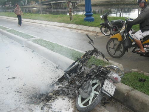 Xe đang chạy bốc cháy rụi