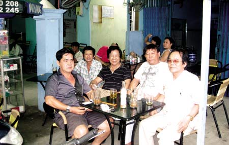 Chúng tôi cùng hàn huyên đủ thứ chuyện, từ cuộc sống cho đến công ăn việc làm. Soạn giả Hải Bằng đã mua nhà mở công ty giải trí, chuyên nhận sô của các đài truyền hình tỉnh rồi giới thiệu anh em nghệ sĩ trẻ tham gia. Nghệ sĩ Tài Bửu Bửu thì làm bầu sô các chương trình giải trí... Mỗi người một việc điều liên quan đến nghệ thuật cả. Các nghệ sĩ bàn tán công việc khiến quán sôi động lên hẳn. Nghệ sĩ Minh Trí bảo tôi: "Nếu có thời gian rỗi anh ngồi đây cả ngày sẽ thấy, cứ hết lượt này đến lượt khác khách đến đây toàn nghệ sĩ cả. Công việc của nghệ sĩ thì đặc thù rất rảnh rỗi vào ban ngày anh em thích tụ tập tại đây. Không chỉ anh em ở xóm nghệ sĩ mà ở khắp thành phố đều đến đây gặp gỡ, bàn chuyện".
