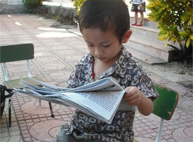 Kiệt đọc báo rất thành thạo