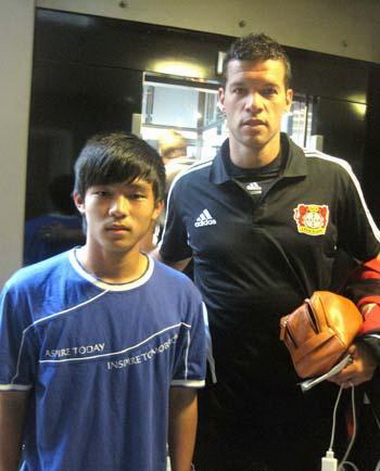 | Thái Sung chụp hình cùng danh thủ Ballack |