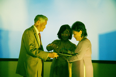 Và đứng chung trên sân khấu để chụp hình với tất cả tác giả trúng giải và nhân viên nhật báo Việt Báo vẫn có vị tiền nhiệm của ông năm xưa, nhà báo lão thành Sơn Ðiền Nguyễn Viết Khánh, 90 tuổi, từ San Jose về tham dự.