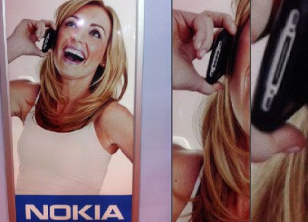 Người đẹp cầm iPhone quảng cáo điện thoại Nokia