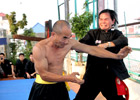 Mỗi tiếng ha... lấy đà vung gậy hết sức đập xuống tấm thân cởi trần đang đứng, tôi nín thở, rùng mình. Người thứ nhất, toát mồ hôi, thở hổn hển, buông "gậy", võ sư thứ hai trẻ khoẻ, cơ bắp cuồn cuộn tiếp tục xuất chiêu. Gậy xuống vun vút đập vào thân mình bật ra, chẳng khác gì que đánh bịch bông. Ba người liên tiếp đập mệt lử, thanh sắt dày bị uốn cong, anh Vân tươi cười đi một vài đường quyền thuật rồi ra bắt tay mọi người, chỗ bị đánh chỉ hơi ửng đỏ.