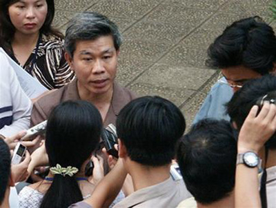Ông Lê Ðức Thúy, khi còn làm thống đốc Ngân Hàng Nhà Nước CSVN, tiếp xúc với báo chí khi tai tiếng in tiền giấy nhựa bị nhiều tai tiếng xấu hồi tháng 6, 2007 mà ông phải viết “kiểm điểm.” (Hình: Tuổi Trẻ)