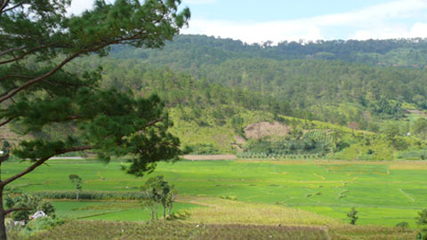 Toàn cảnh cánh đồng K’Rèn hai vụ lúa của người dân nằm trong diện thu hồi thuộc dự án sân golf khu du lịch K’Rèn. Ảnh: Thái Thiện