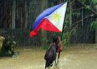 Cảm động trước cô bé giữ quốc kỳ trong bão