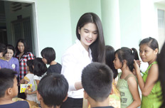 Ngọc Trinh giản dị trong chuyến làm từ thiện đầu tiên
