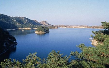 Hồ nước trong xanh tại khu nghỉ dưỡng núi Kumgang.