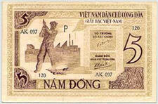 Ngày 31/11/1946, lần đầu tiên những đồng tiền của nước Việt Nam Dân chủ Cộng hòa được chính thức phát hành. Một mặt tiền có chữ Việt Nam Dân chủ Cộng hòa (chữ Quốc ngữ và chữ Hán) và hình Chủ tịch Hồ Chí Minh. Một mặt có hình Nông Công Binh. Các loại tiền giấy gồm nhiều mệnh giá khác nhau: 100 đồng, 20 đồng, 5 đồng, 1 đồng và có chữ ký của Thứ trưởng Bộ Tài chính Phạm Văn Đồng hoặc Bộ trưởng Bộ Tài chính Lê Văn Hiến cùng với chữ kí của Giám đốc Ngân khố Trung ương.