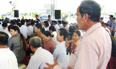 Bị buộc phải trực tiếp đối thoại với người dân, cuối cùng ông Nguyễn Bá Thanh phải xuất hiện và ngồi nghe người dân ca thán về sự hy sinh của họ cho một dự án ra đời.