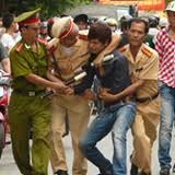 Ôm chặt CSGT, giải vây cho bạn gái dắt xe đi