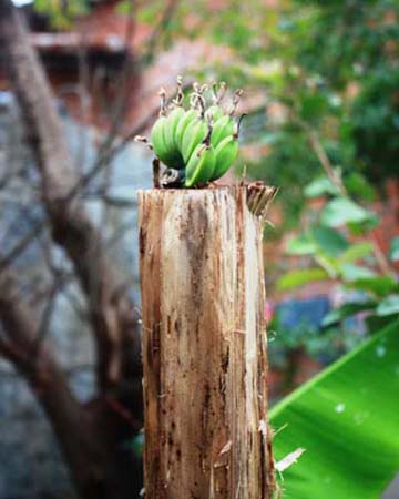 Chuối trổ buồng giữa thân