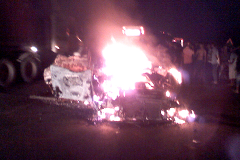 Chiếc xe của bọn cướp bị dân đốt cháy rụi