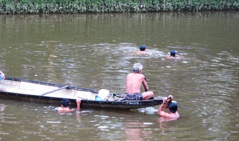 Mấy chục năm nay, bất kể nắng mưa, trời đêm rét buốt, ba anh em ông Sết âm thầm lặn mò tìm xác những người tự tử, tai nạn chết đuối…còn nằm lại dưới đáy sông.