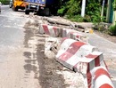 Xe container cày nát dải phân cách, một phụ nữ trọng thương
