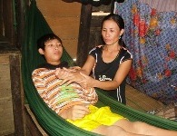 Một phụ nữ dáng người thấp nhỏ, khuôn mặt hao gầy, khắc khổ đon đã ra đón khách. Chị là Trương Thị Hoa (mẹ em Di). Chị Hoa năm nay mới 41 tuổi nhưng đã già hơn trông thấy vì những vất vả lo toan trong cuộc sống hàng ngày.