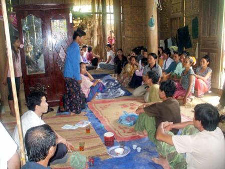 Một buổi họp bàn về chuyện vợ chồng cho một cặp vợ chồng ở bản Na Hốc 2