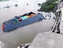Tài xế ngủ gật, xe tải rơi xuống chân cầu