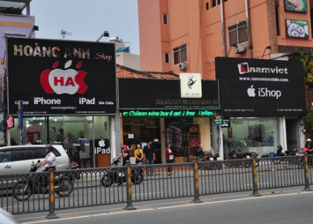 Tại Hà Nội, các cửa hàng sử dụng logo "quả táo khuyết" với bảng hiệu dùng hai màu trắng đen và có tên gọi giống các cửa hàng chính hãng của Apple xuất hiện ngày càng nhiều. Nhưng đa phần đều là hàng... nhái.
