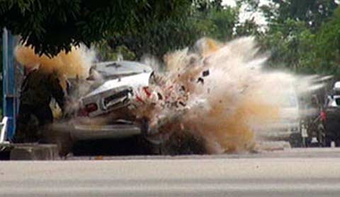 Một xe bom phát nổ ở tỉnh Narathiwat, miền Nam Thái Lan, ngày 1/7. (Ảnh: Reuters)