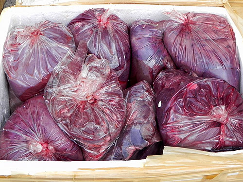 Thật khó để tưởng tượng, nhưng đối với một số nhà xe chạy tuyến Bắc - Nam hiện nay, “hành khách” yêu thích của họ là các loại thực phẩm, gồm: nội tạng gia súc, chân gà, móng lợn, đuôi bò… thối. Theo lời khai của các tài xế lúc bị phát hiện thì hầu hết điểm đến của số “hành khách” không mấy thơm tho thường là ở các tỉnh phía Nam, đặc biệt là TP.HCM - thị trường tiêu thụ lớn nhất nước. Các chủ hàng sử dụng các loại xe chuyên chở thịt thối cũng rất đa dạng. Từ xe khách loại 12 chỗ ngồi, đến xe khách chất lượng cao, thậm chí là… xe cứu thương. Nội tạng, chân, đuôi, tai trâu, bò thối…