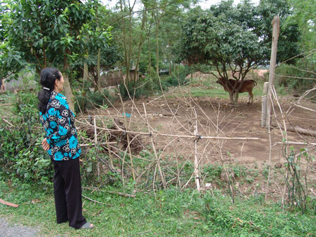 Bà Mai bên mảnh đất của gia đình nhưng đã được cấp sổ đỏ cho bà Liệu. Ảnh: K.N.