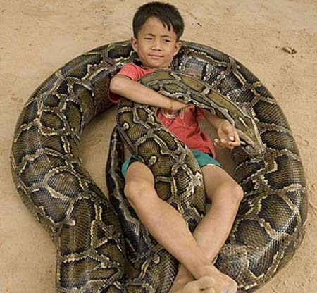 Trẻ 6 tuổi đùa với trăn khổng lồ nặng 120 kg